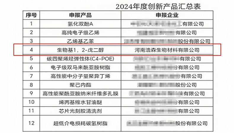 生物基1,2-戊二醇成功入選全國12項年度化工新材料創(chuàng)新產(chǎn)品